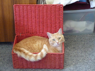 Eddie taking advantage of a basket I just cleared out to use for my crochet!